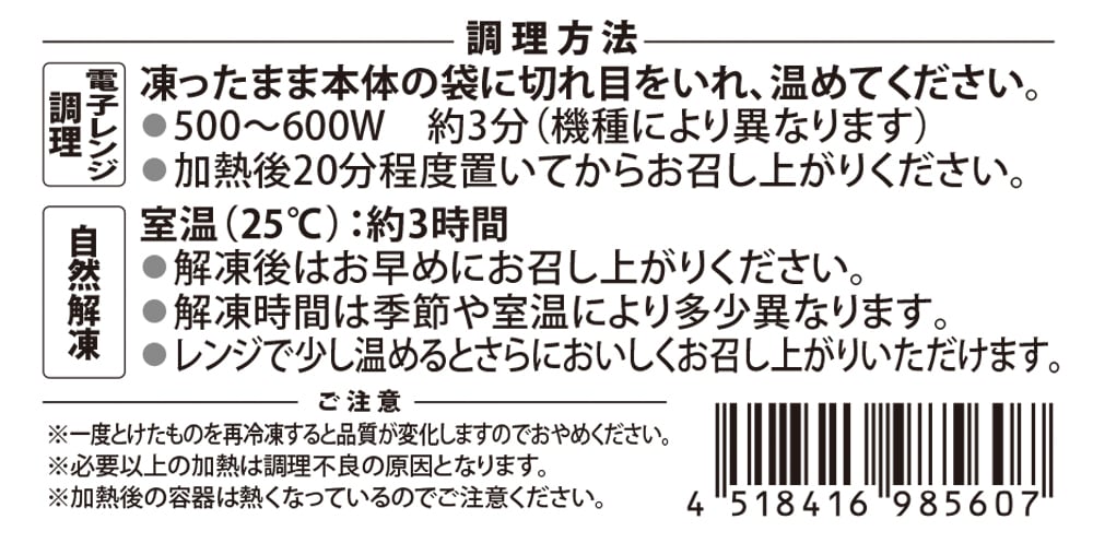 ※冷蔵庫での保存・解凍はお避けください。