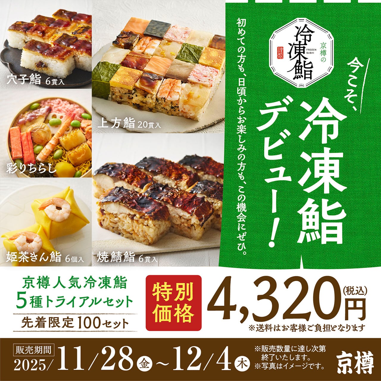京樽人気冷凍鮨5種トライアルセット【先着限定100セット】